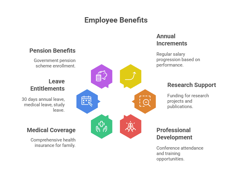 | Leave Entitlements | 30 days annual leave, medical leave, study leave |