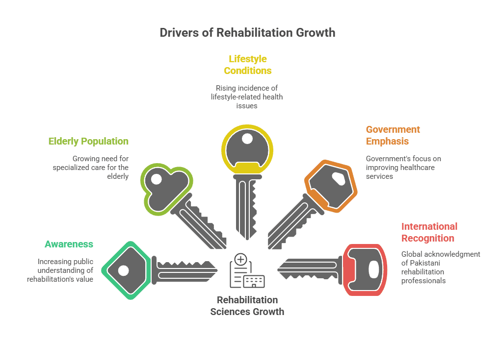 The rehabilitation sciences sector in Pakistan is experiencing significant growth, driven by: