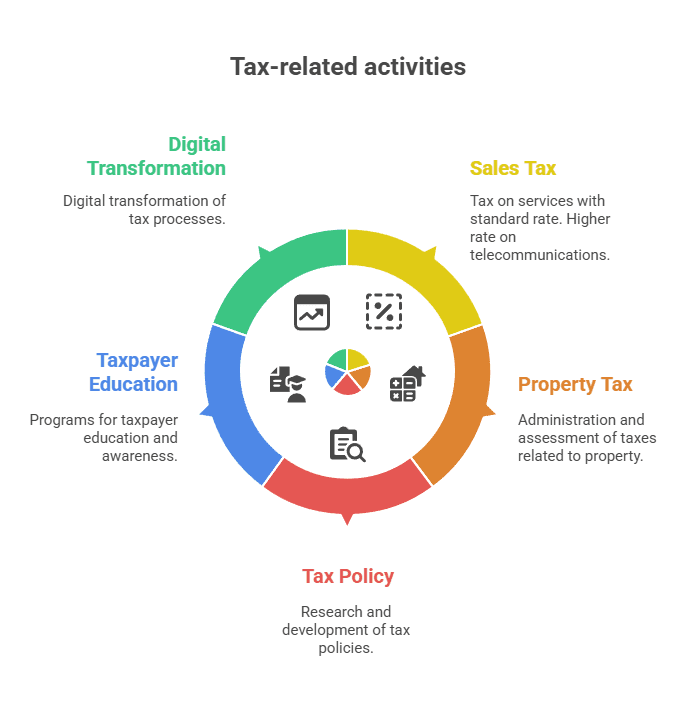 - Sales Tax on Services (15% standard rate, 19.5% on telecommunications)