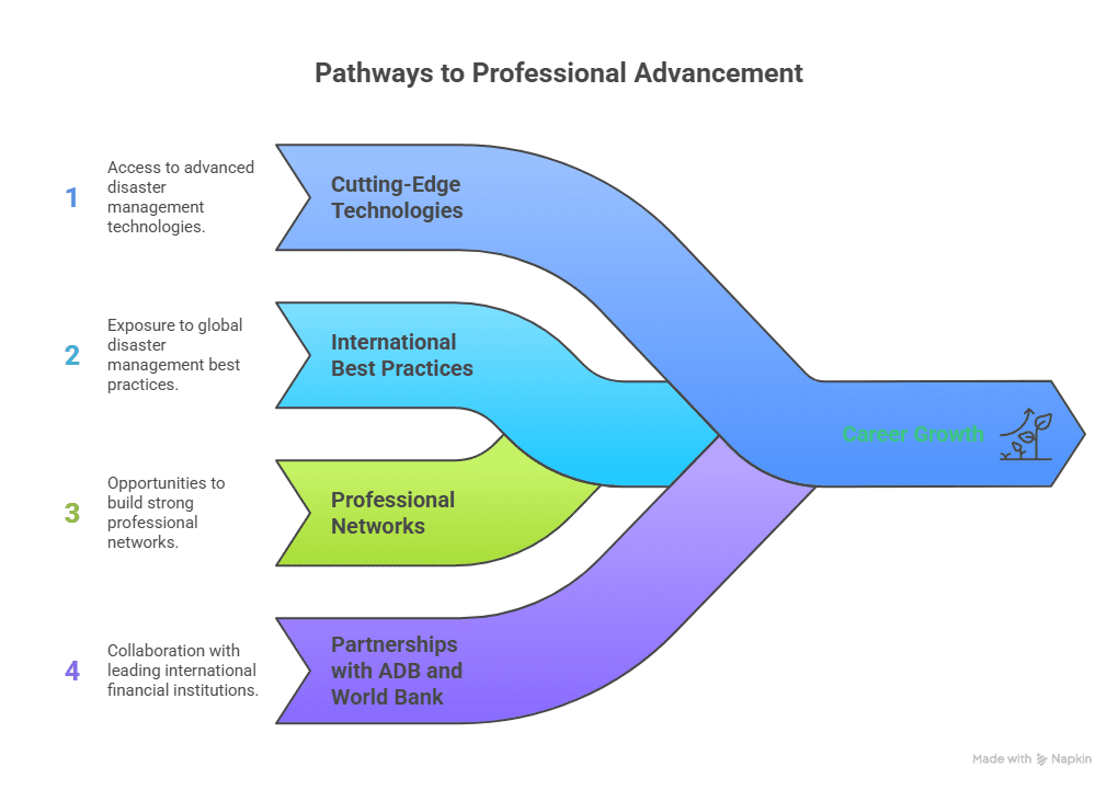 Pakistan disaster management provides many opportunities in career progression, with a growing demand involving expertise through climate adaptation, response to emergency situations, and risk evaluation. The NDRMF position also offers good experience in work with international organizations and development partners.