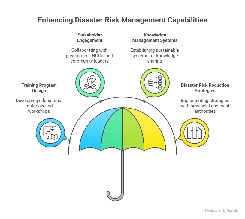 The Capacity Building & Outreach Expert will also carry out elaborate training programs on disaster risk management with different stakeholders. These will involve creation of educational materials, workshops as well as sustainable knowledge management systems.