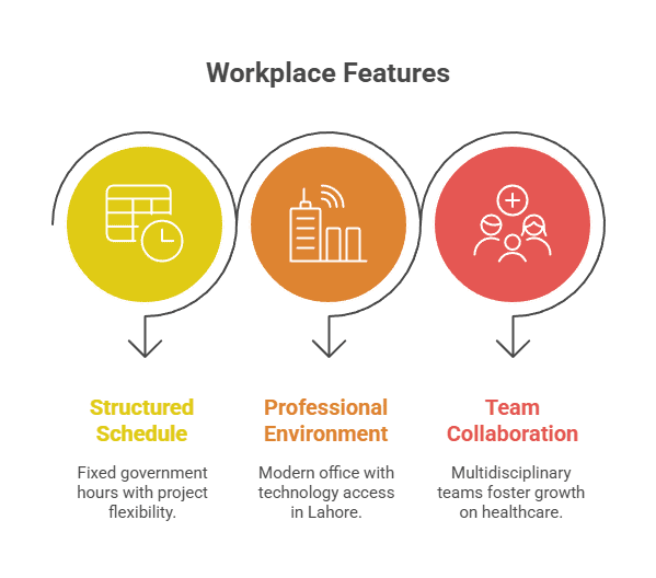 Structured Schedule: Government working hours from 8:00 AM to 4:00 PM, Monday to Friday, with flexibility for project requirements.