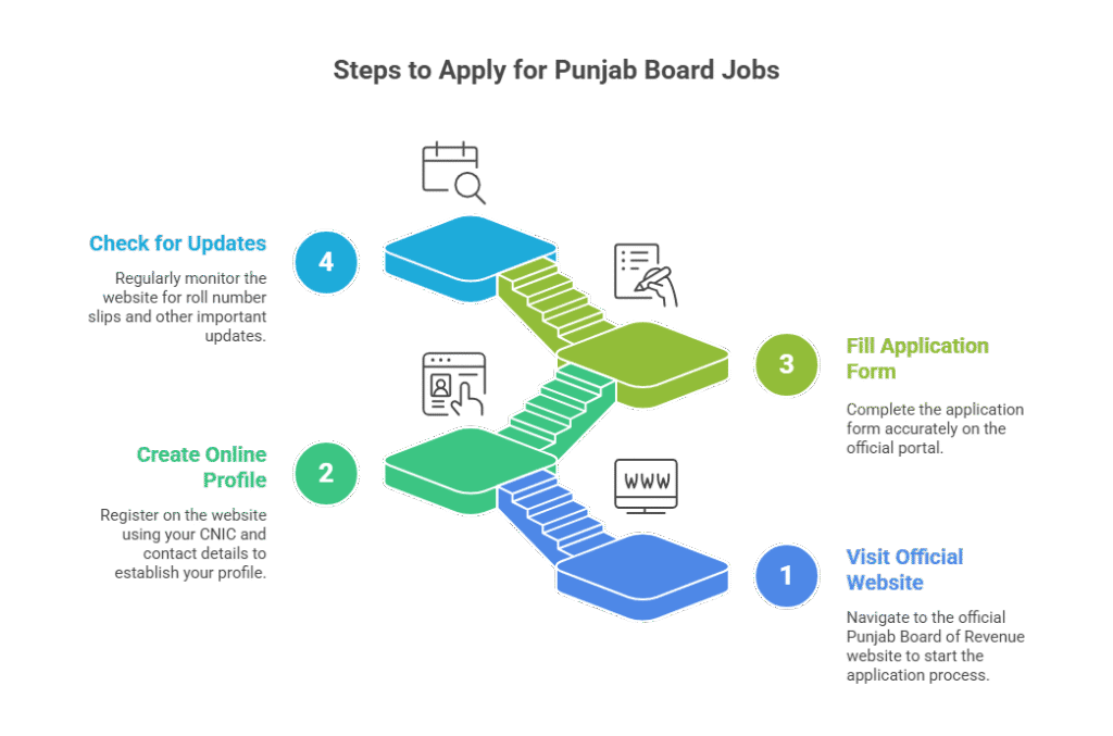Apply through the official website: www.pbor.punjab.gov.pk.